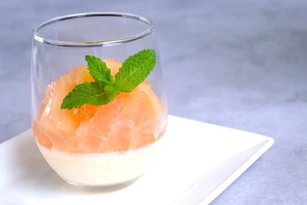 デザート 桃のコンポートとブランマンジェ ミントゼリーがけ