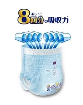 Lサイズでは男の子・女の子それぞれ6種類、ビッグ以上サイズでは各5種類のデザインを用意しています。ただし、スーパービッグサイズについてはデザインの変更はありません。 - 超強力吸収機能