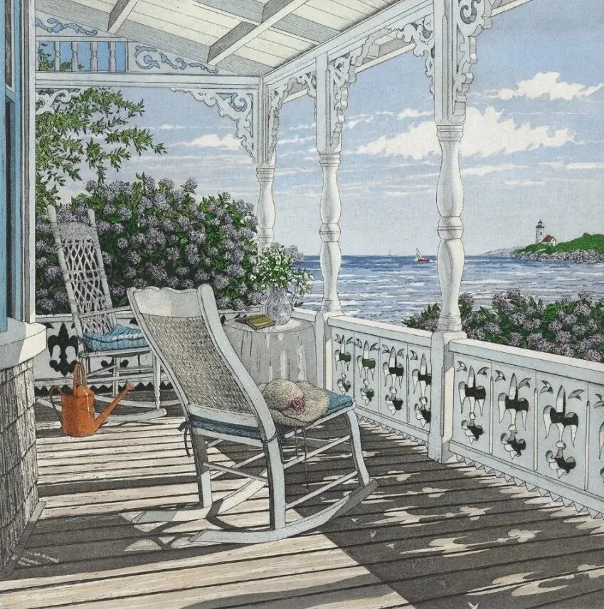 - Ocean Breeze(ジクレー版画): マーサズ・ヴィンヤードのコテージや花々、海からのそよ風を感じさせる作品。