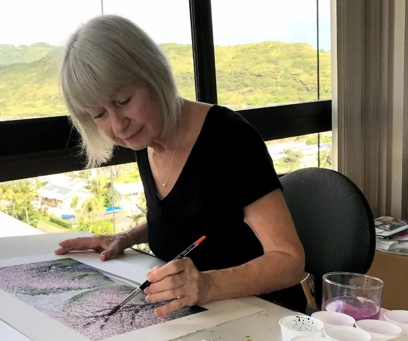 キャロルは、銅版に鋭いニードルで線を刻み、手彩色によって作品に命を吹き込む技術を持っています。この手法により、彼女の作品は唯一無二の存在となり、同じ作品が二枚と存在しない「ユニークなエディション」として高く評価されています。