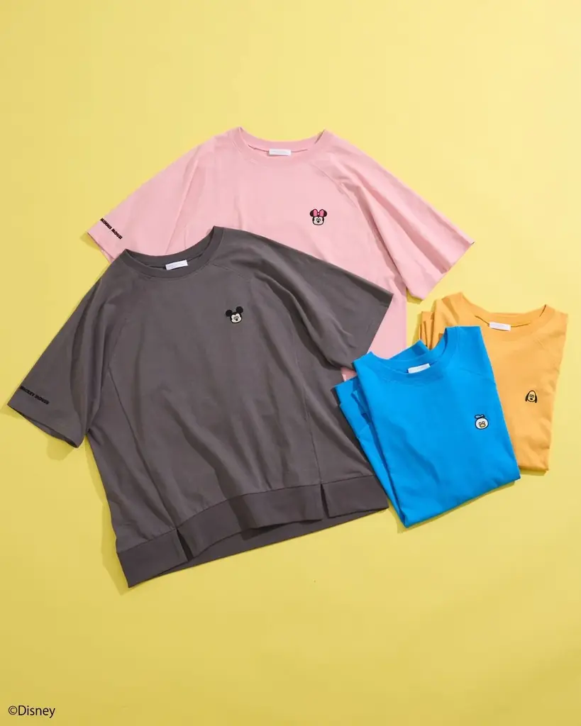 トップスには、ワンポイントで施したキャラクターが魅力のカラーTシャツと、「ミッキーマウス」を主役にしたショート丈のポロシャツが含まれています。さらに、持ち上げアートを刺繍した巾着バッグや、4キャラクターが仲良く座る姿を取り入れたマルチケース、フェイスをモチーフにしたチャームなど、豊富なバリエーションが揃っています。