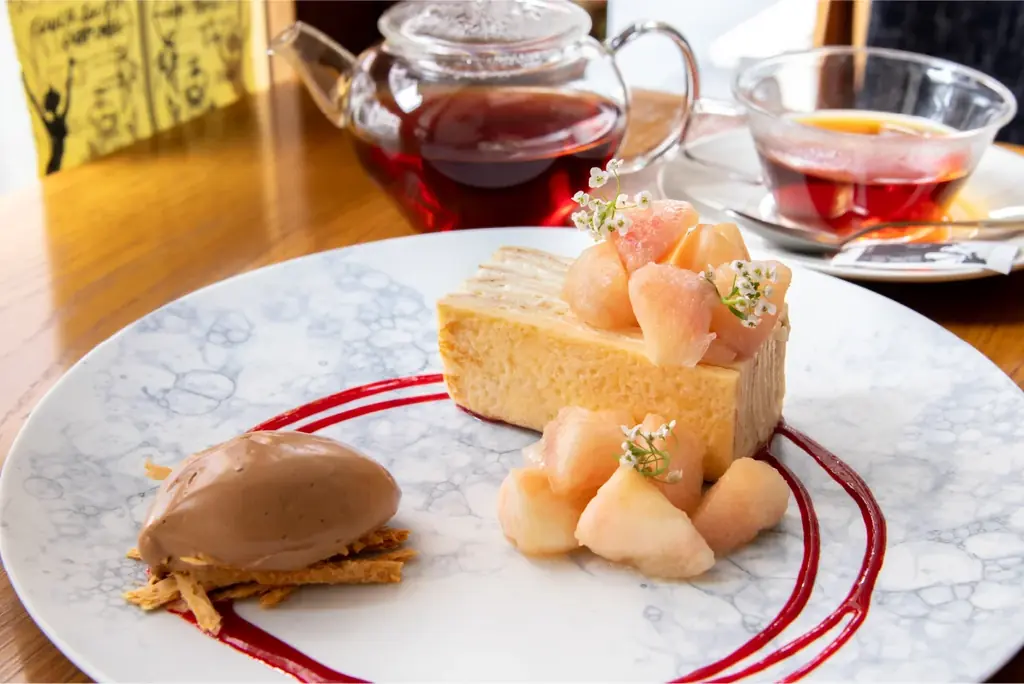 このメニューは、旬の白桃を贅沢に使用し、ミルキッシュチーズクリームを何層にも重ねたミルクレープである。さらに、香り豊かな紅茶アイスを添えることで、見た目にも美しく、味わいも豊かな一品に仕上げられている。数量限定で提供されるため、早めの来店が推奨される。