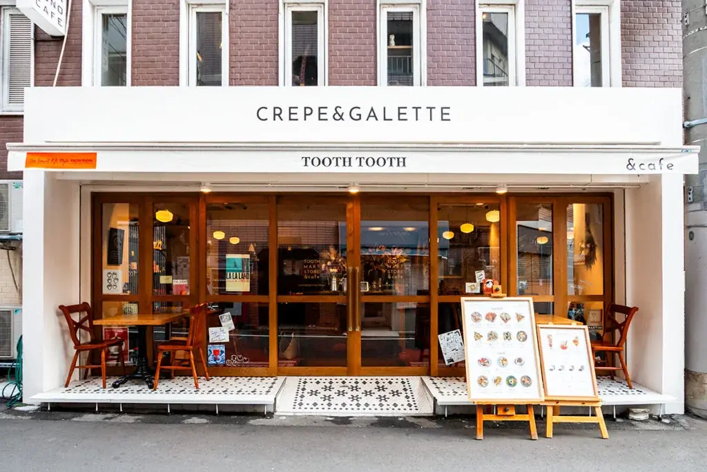 「CREPE & GALETTE TOOTH TOOTH」は、1986年に神戸・トアウエストの路地裏で開業した「TOOTH TOOTH」の新業態である。開業当初は手作りの小さなお店であり、アートや音楽を愛する若者たちの集まる場所として知られていた。現在では、37年の時を経て、クレープとガレットの専門店として新たなスタートを切った。