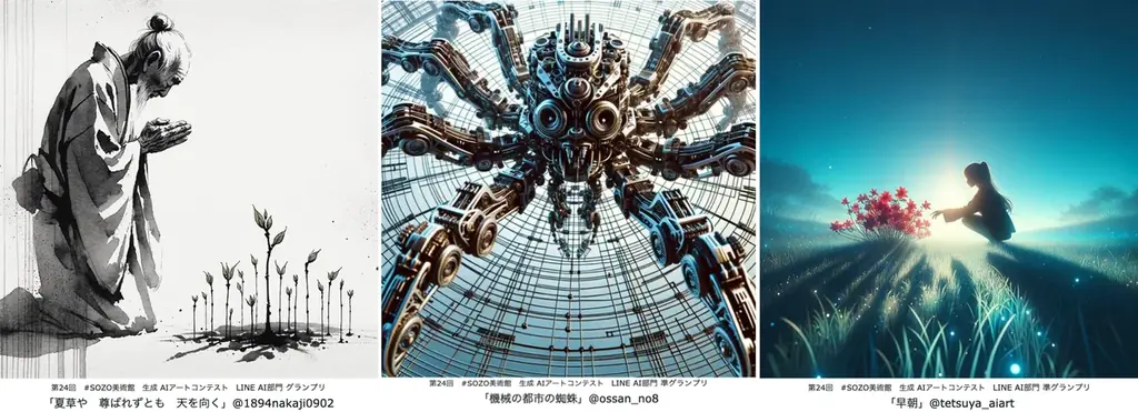 | LINE AI「AIキャンバス」 | グランプリ | 生々 夏草や 尊ばれずとも 天を向く | @1894nakaji0902 |