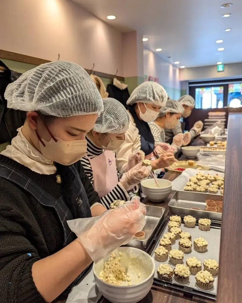 - 雷粉のおにぎりケーキ: 米粉のガトーショコラとチーズケーキを組み合わせ、ポン菓子やホワイトチョコ、ドライフルーツで飾った一口サイズのケーキです。見た目のインパクトと味の両方を楽しむことができます。