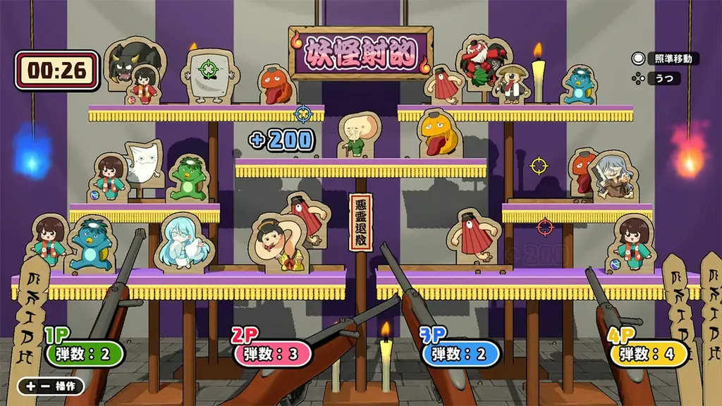 - 射的:妖怪の的を狙い撃ちするスリル満点のゲームです。