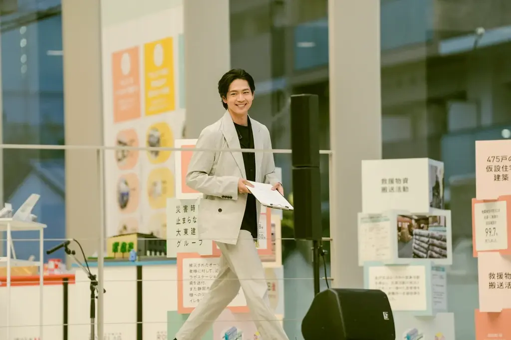 今回の公開収録は、賃貸住宅未来展示場・ROOFLAG(ルーフラッグ)で行われました。開演時間になると、80人のリスナーが集まり、松下洸平が元気よく登場。彼の「松下洸平です!」という挨拶に、会場は歓声に包まれました。