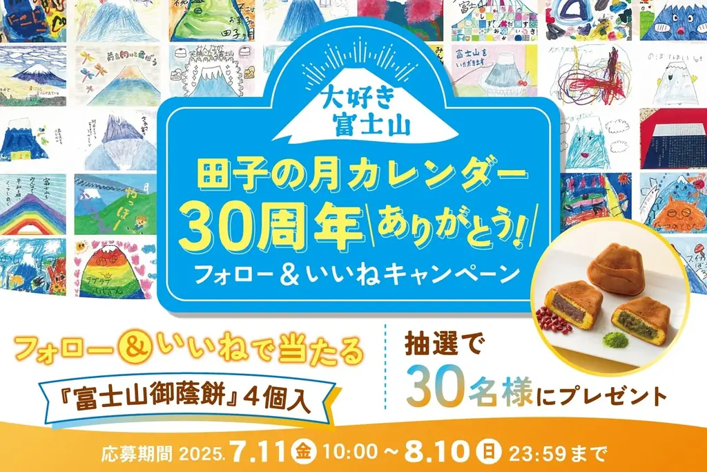 株式会社田子の月は、2025年7月11日より「富士山カレンダー」の発行30周年を記念して、感謝の気持ちを込めた特別なキャンペーンを実施します。このキャンペーンでは、Instagramを通じてフォローや「いいね」をすることで応募が完了し、抽選で特別なプレゼントが当たるチャンスがあります。