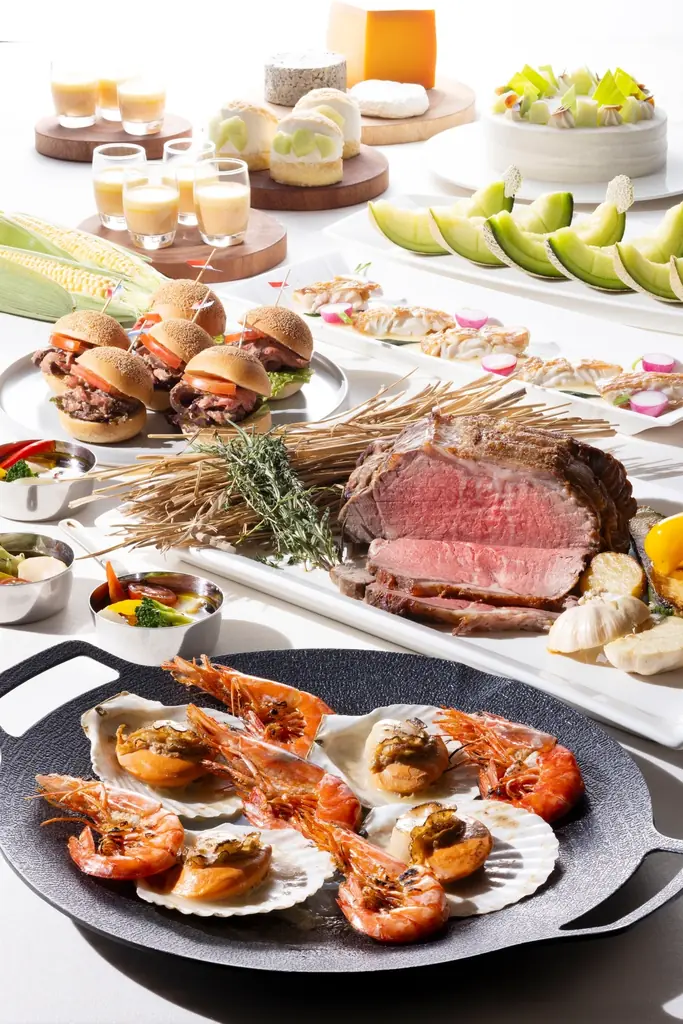 お盆期間中には、「お盆期間限定スペシャルディナーバイキング」が行われます。こちらでは、人気のローストビーフをはじめ、北海道産の食材を使用した多彩な料理が楽しめます。特に、暑い夏にぴったりなスパイスの効いたメニューも用意されており、ライブクッキングで出来立ての料理を味わうことができます。
