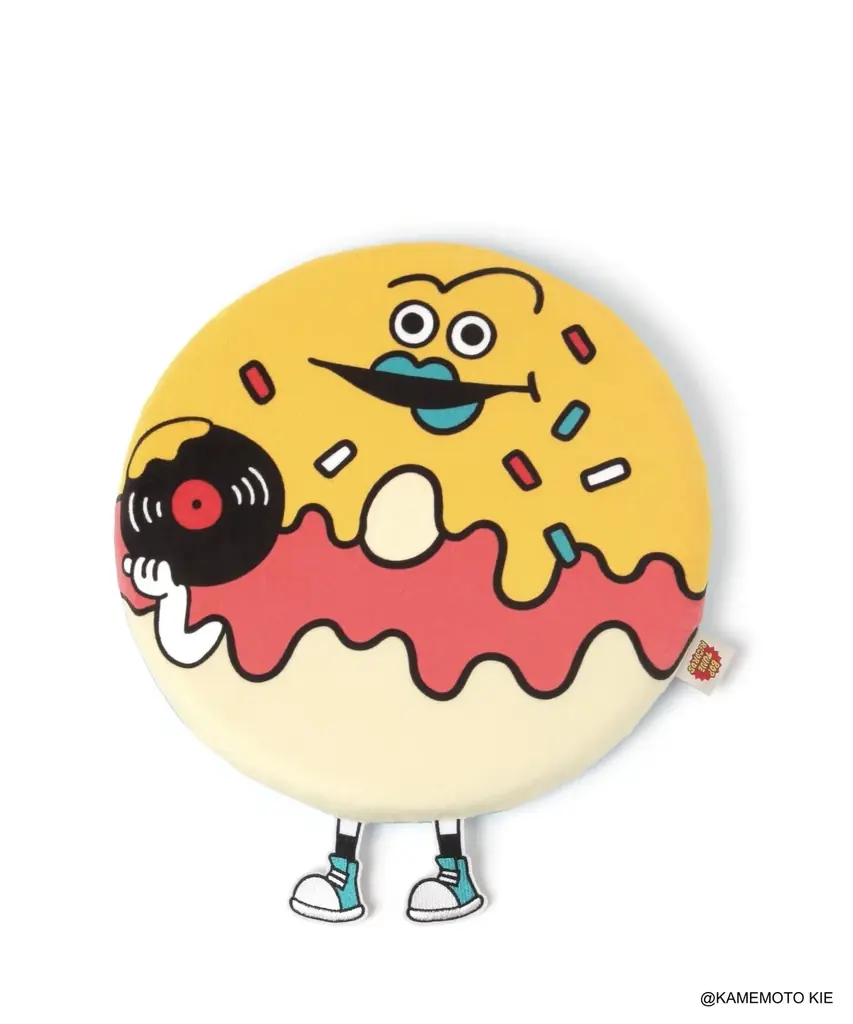 | シートクッション | 2,530円 | カラー展開:ブラック / イエロー。レコード部分がキャップ、ドーナツ部分が足の刺繍。 |