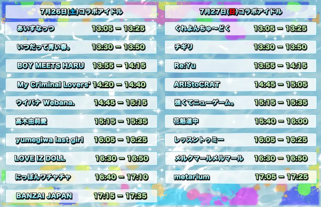 - 実施日・場所:2025年7月26日(土)、27日(日) 富士急ハイランド セントラルパークステージ