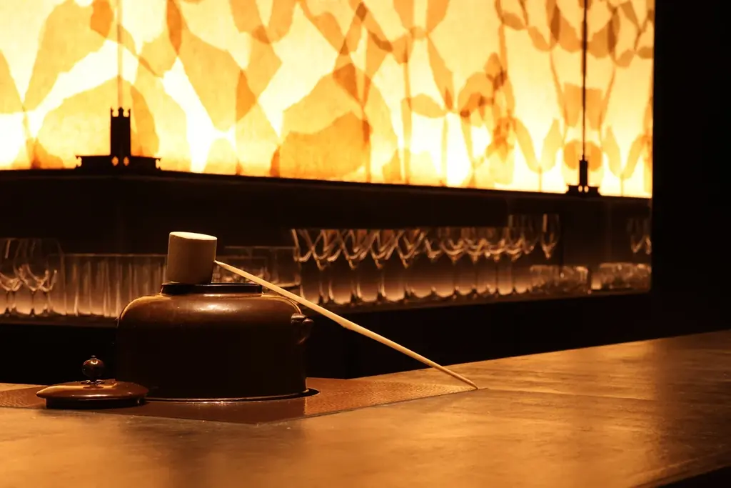 「Remake easy博多天神」は、独特なアプローチが特徴的で、露地のような雰囲気を持つ商業ビル内に位置しています。入店すると、障子を模したブロンズの光壁が迎えてくれ、和紙貼りのカウンターでは、職人が手がけるパフェの制作過程を間近で見ることができます。