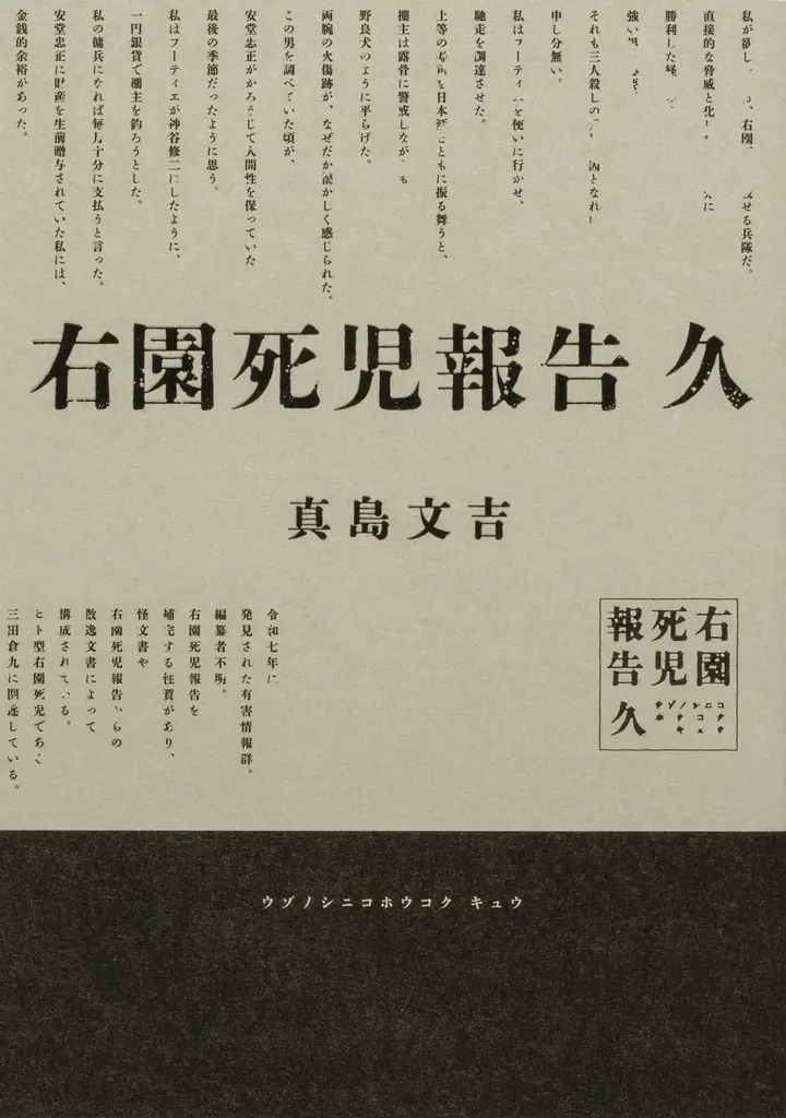 | 『右園死児報告 久』 | 真島文吉 | 1,430円 | 9784047384699 | 新たに発見された有害情報群を基にした怪文書の記録。 |