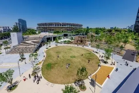 都立明治公園は、国立競技場の前庭空間の約1.6haを事業対象地とし、Tokyo Legacy Parksが整備・運営しています。この公園は「みんなでつくり続ける公園」をコンセプトに掲げ、様々なステークホルダーが協働し、新しい価値を共創していく場となっています。