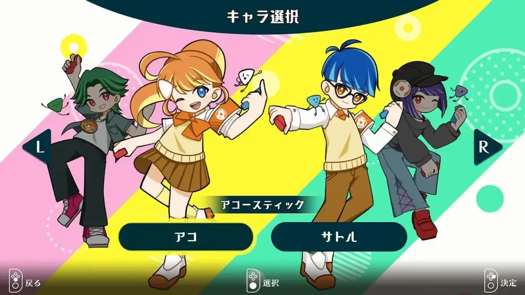 オルタネイトストロークというギター奏法の基本を学ぶことができ、プレイ中のキャラクターによってギターの音色が変わるため、好きなキャラクターを選んで楽しむことができます。