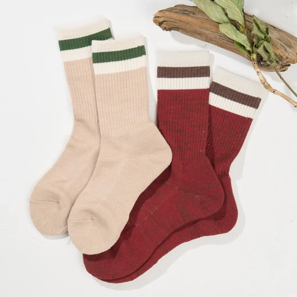 | ウール&コットン アウトドアソックス | 3,410円(税込) | テラコッタブラウン、サンドオリーブ | M:22~25cm、L:26~28cm | ウール50%、コットン26%、ポリエステル22%、ナイロン1%、ポリウレタン1% | くらしきぬオンラインショップ、くらしきぬ倉敷本店 他 |