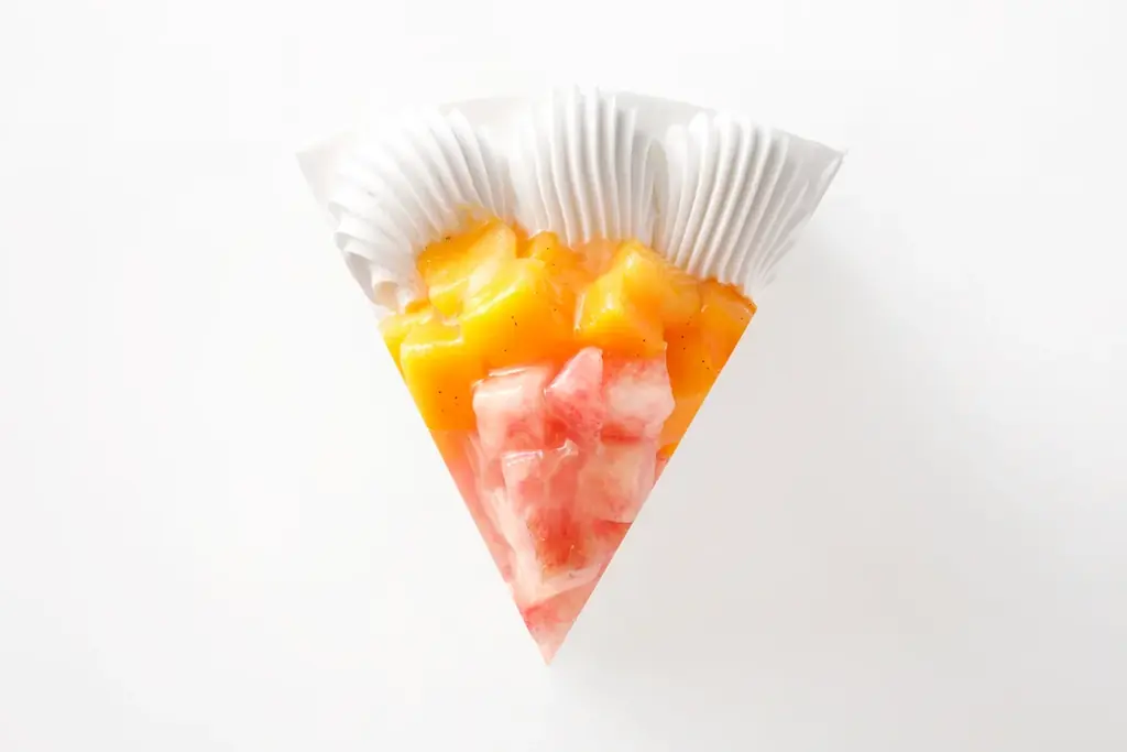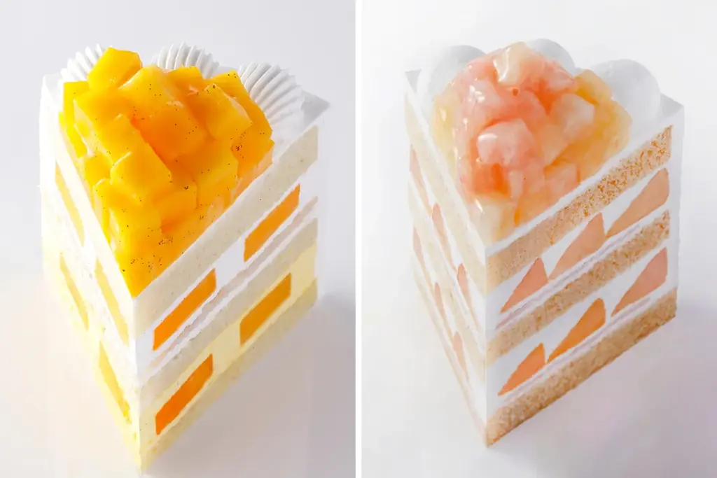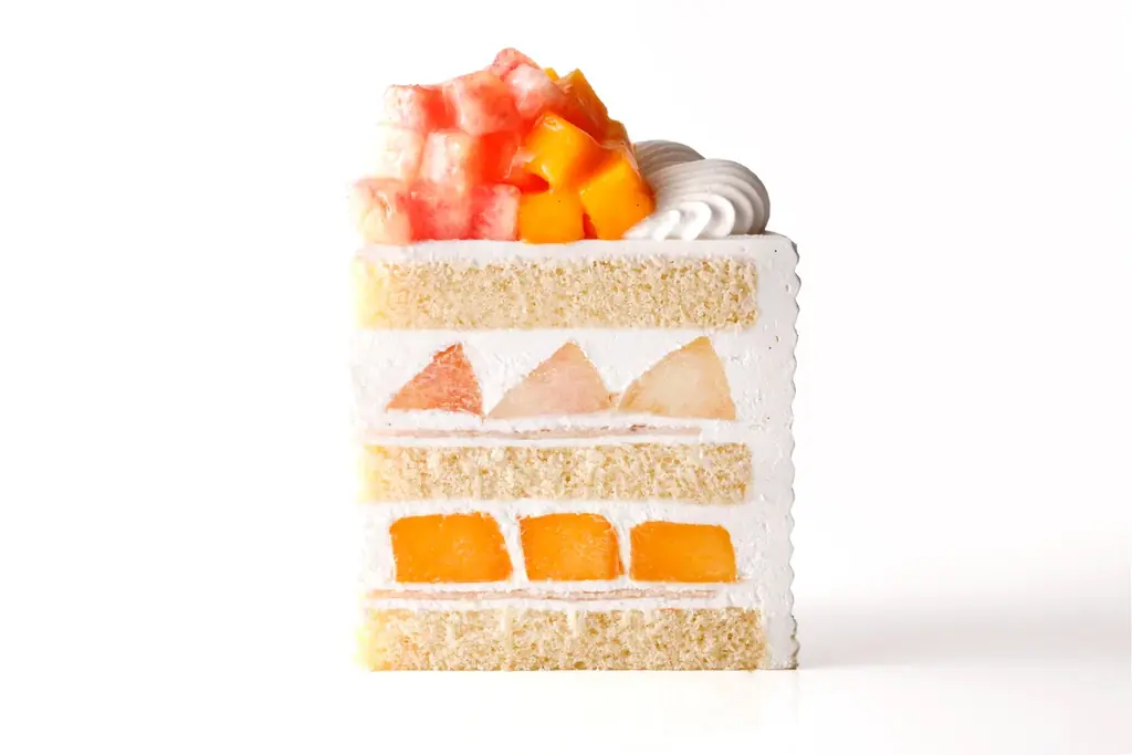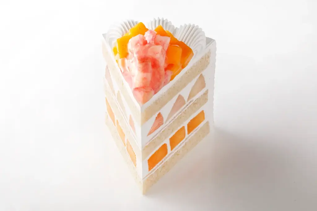 国産マンゴーと山梨県産の高糖度桃「一桃匠」を使い、ライチとエルダーフラワー葛で爽やかさを加えた夏限定の贅沢なショートケーキです。