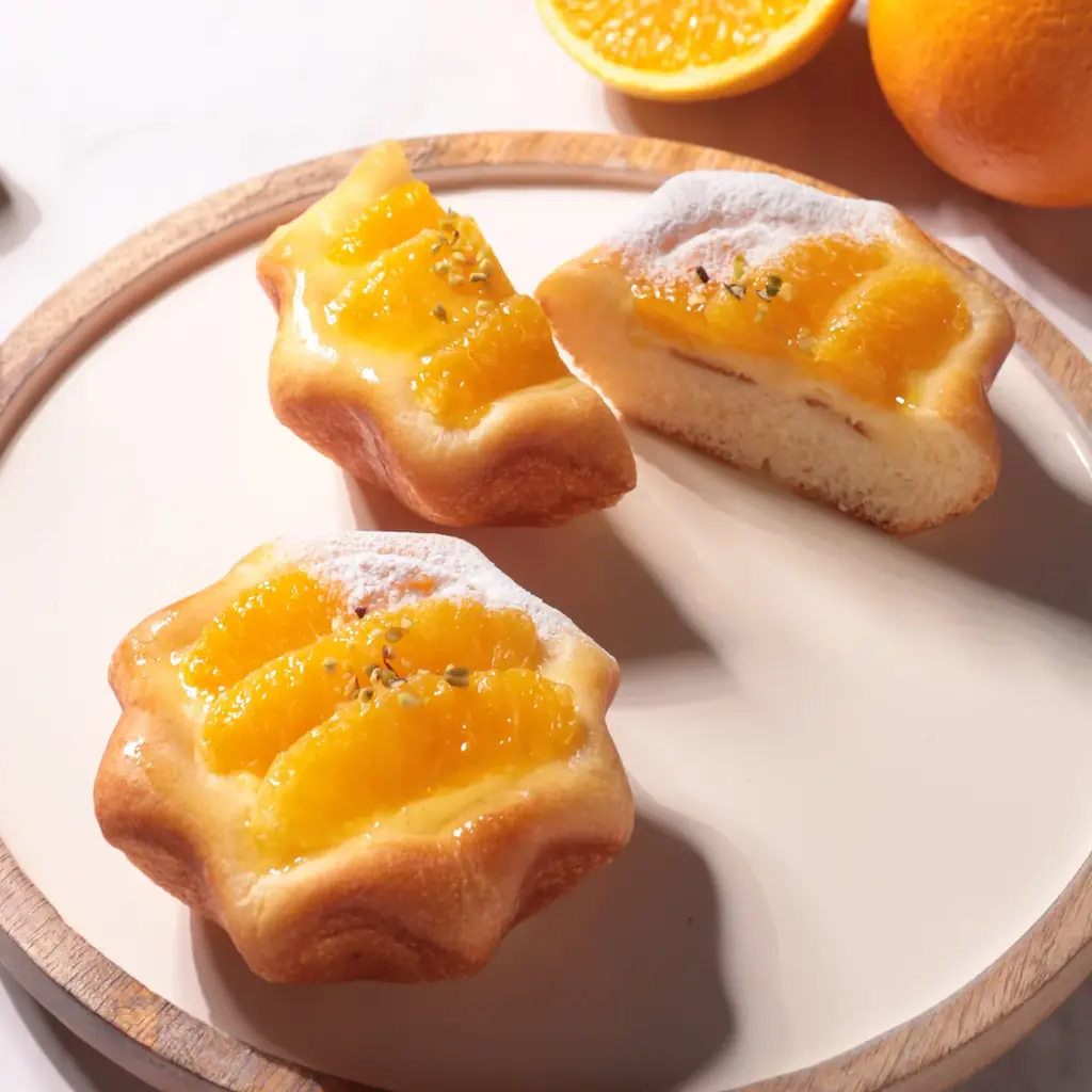 このフェアの目玉商品である「オレンジクグロフ」は、爽やかなレモン風味のカスタードが絞られ、オレンジがトッピングされています。見た目も華やかで、食べると口の中に広がるオレンジの香りが特徴です。