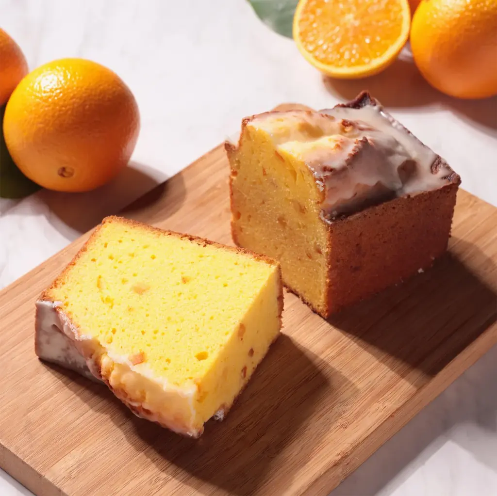 しっとりと焼き上げたオレンジのパウンドケーキに、オレンジ風味のグラスアローがあしらわれた「オレンジのケーキ」。甘さと酸味のバランスが絶妙で、コーヒーや紅茶との相性も抜群です。