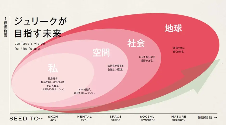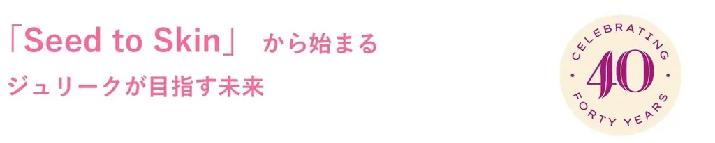 ジュリークは、40周年を迎えるにあたり、未来に向けた新たなビジョンを描いています。それは、肌や心に恩恵をもたらす地球への恩返しを含む取り組みです。環境への配慮を忘れず、持続可能な社会の実現に向けて努力を続けることが重要です。