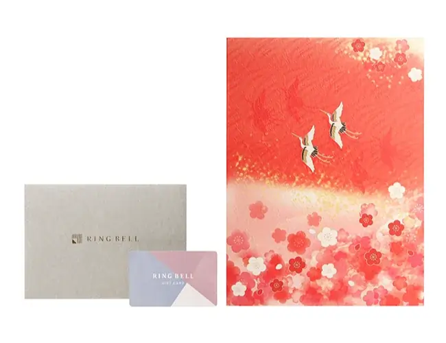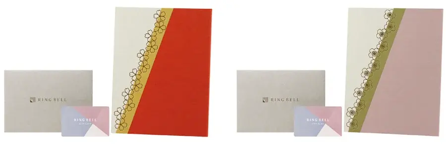 日本の伝統色である朱色や桃色などの繊細な和色を用いた台紙。年齢や性別を問わずどなたにも送りやすいデザインです。色は朱色か桃色のいずれか1点のお届けとなります。