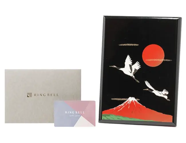 高級感のある黒漆に、縁起の良い鶴と富士の蒔絵と金箔を施した漆台紙。長寿・繁栄・幸運を象徴するデザインで、ご年配の方への敬意を表したいシーンに最適です。 - 紅梅 プレゼンテージビオラ – 価格: 10,450円(税込)