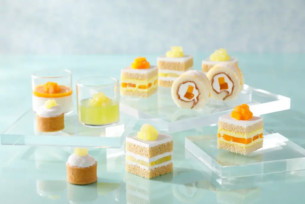 スイーツメニューも充実しています。ニューオータニのスイーツの代名詞であるスーパーメロンショートケーキや特製パンケーキに加え、長野県産の桃や葡萄、りんごを使用したオリジナルスイーツも登場します。特に、昼夜の寒暖差が大きい長野県で育った桃は糖度が高く、みずみずしいタルトや杏仁プリンに仕上げられています。