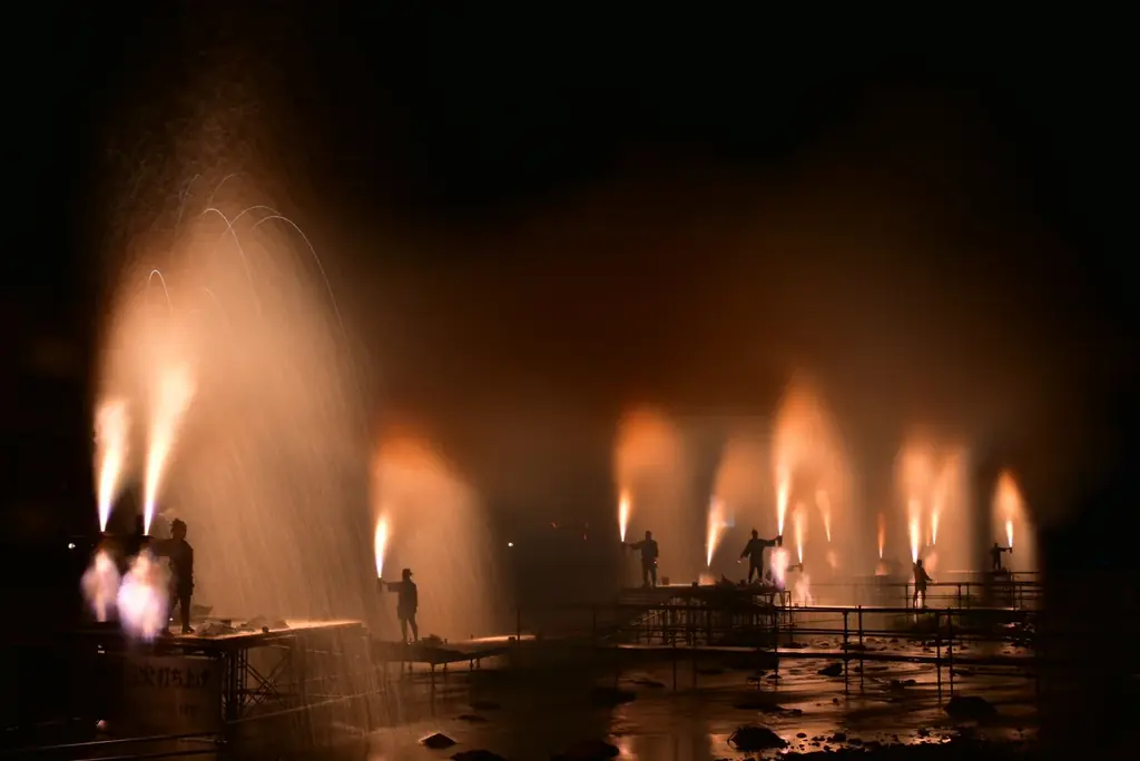 手筒花火は、竹筒を用いて打ち上げられる花火で、火の粉が舞う中での勇壮な姿が特徴です。このイベントでは、約40名の手筒組が参加し、火柱は8〜10mに達します。打ち上げの後には、迫力満点の轟音が響き渡り、観覧者や参加者の厄払いを祈念します。
