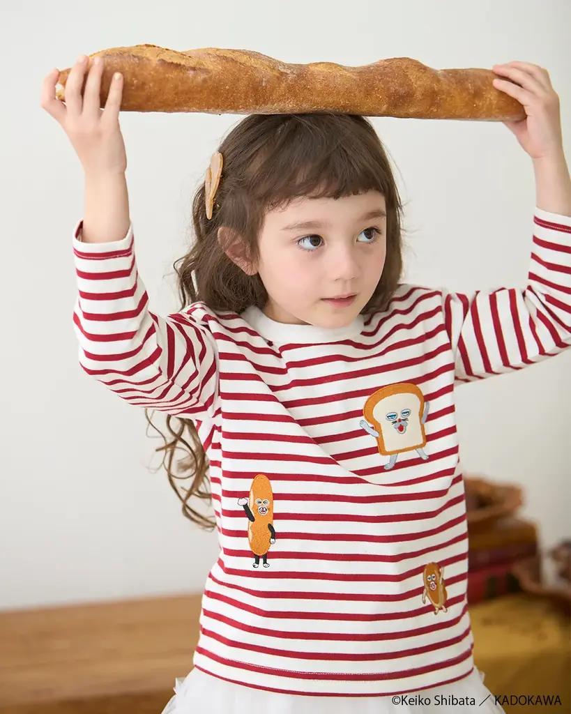- 【パンどろぼう】ボーダーモチーフ長袖Tシャツ