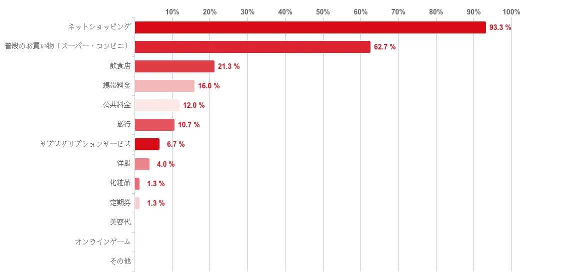 | 主な利用シーン | ネットショッピング:93.3% / スーパー・コンビニ:62.7% / 飲食店:順位あり |