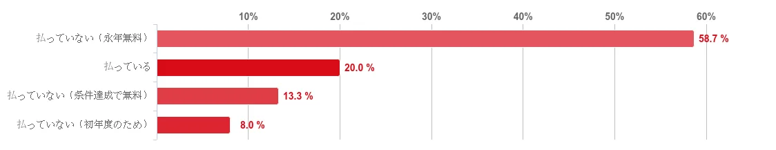 - 年会費:永年無料を使っている学生が58.7%、払っている人が20.0%(その他は「条件達成で無料」などの区分)
