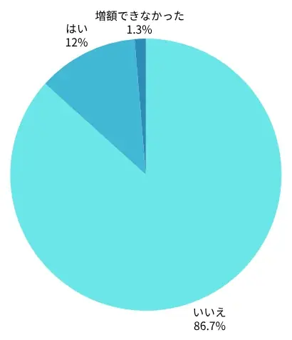 限度額の増額申請については、増額したことがある学生は12.0%、増額を行ったことがない学生は86.7%、増額審査に落ちた人はわずかに1.3%でした。