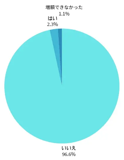 | 限度額の増額経験 | いいえ 96.6%、はい 2.3%(増額審査で落ちた人:1.1%) |