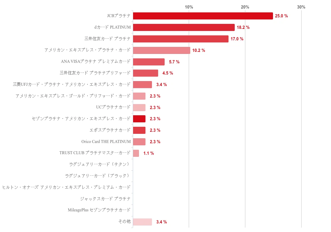 | 所有率上位カード | JCBプラチナ:25.0% / 三井住友カード プラチナ:23.9% / dカード PLATINUM:18.2% |