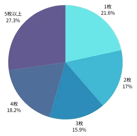- クレジットカード保有枚数:5枚以上が27.3%で最多。全体の約8割近くが複数カードを保有。