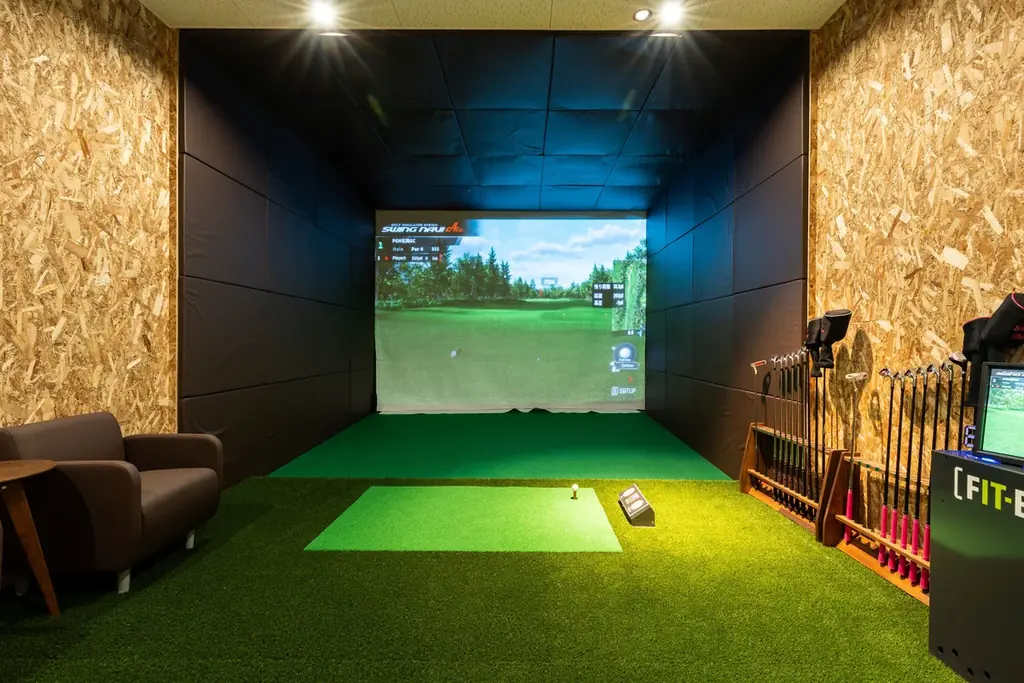 天候に左右されずに練習できる大型画面のシミュレーションゴルフを備え、臨場感のあるプレー環境を提供します。ゴルフ初心者でも練習しやすい設計となっています。