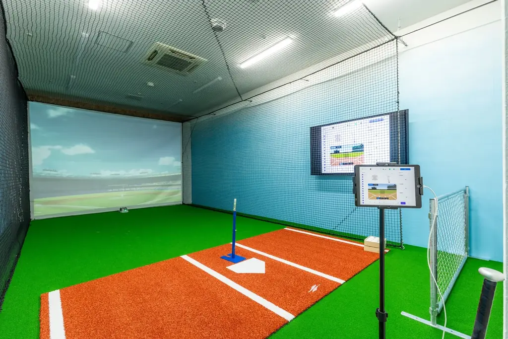 投球・打撃に関しては、Rapsodoを導入したFIT-BASEBALL設備を設置。高性能カメラと解析ソフトによりピッチングデータを詳細に可視化し、科学的根拠に基づくトレーニングが可能です。ピッチングブースとバッティングブースを完備しています(画像はイメージ)。