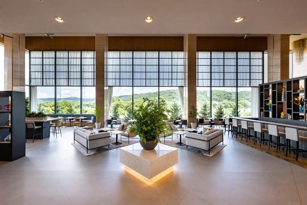 館内は地上9階、全114室を擁する設計で、ビジネスからレジャー、ワーケーションや長期滞在まで柔軟に対応できる客室構成です。ロビーには「オープンロビー」コンセプトを導入し、寛ぎと利便性を兼ね備えた空間を提供しています。