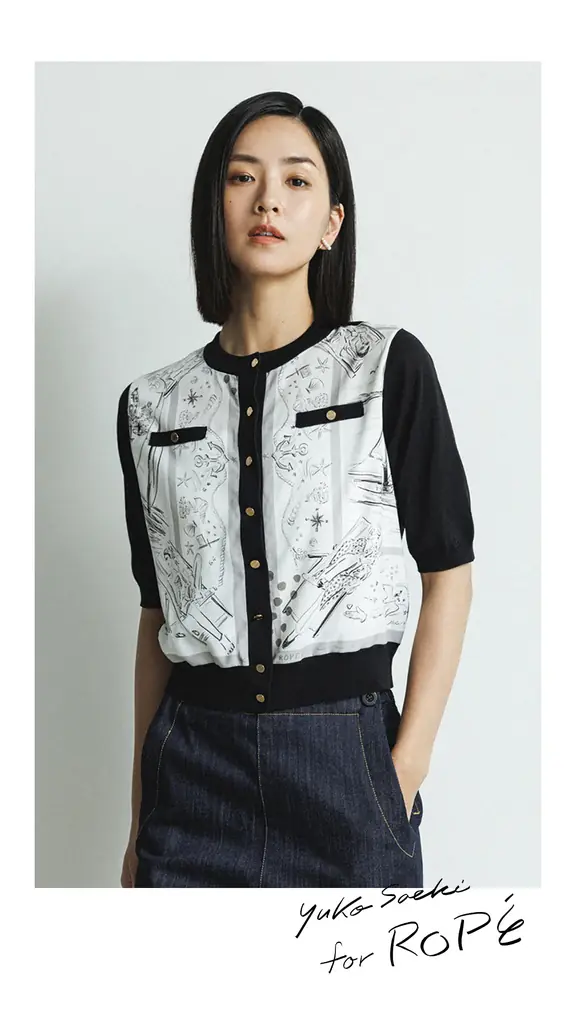 シルクライクなプリントやハイゲージニット、上質な天竺やシルクを用いることで、見た目の上質さと着心地の良さの両立を図っています。ROPE’らしいクラシカルな要素を残しつつ、現代のスタイリングに合わせやすい形で仕上げられています。
