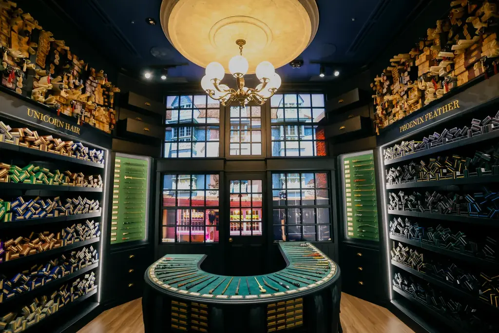 エスカレーターの頭上に舞うフクロウや、壁面に描かれたケンタウルスなど、移動の途中にも発見が続く作りです。これらの演出は、単なるグッズ販売にとどまらない体験型の「旗艦店」としての設計思想を具現化しています。