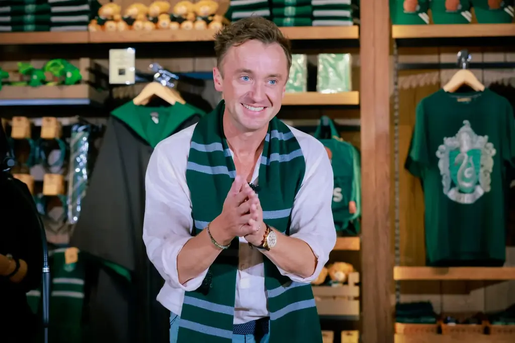 オープンに先立ち実施されたオープン記念イベントには、映画『ハリー・ポッター』シリーズでドラコ・マルフォイを演じたトム・フェルトンが緊急来日し、timeleszの松島聡が来場しました。会場は1階フロア、バックビークの前で行われ、来場者と報道陣に向けてトークとフォトセッションが行われました。