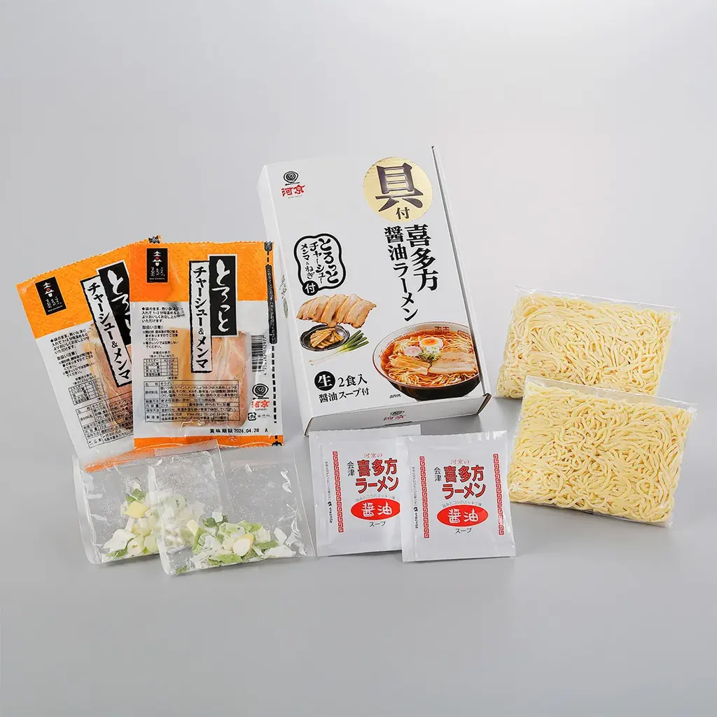 | 具付喜多方ラーメン2食入 | 2人分の麺とスープ、具材がセットになった商品。手軽に本格スープを味わえる構成。 | 1,000円台 |