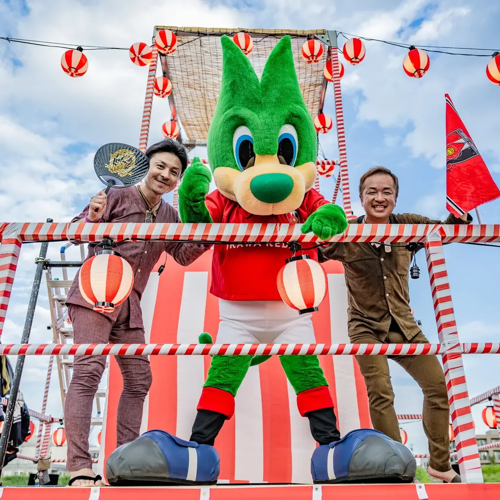 節目となった8月16日の名古屋戦では、試合に合わせて夏祭りをテーマにしたイベント「炎日(えんにち)2025」が開催されました。スタジアム場外では縁日ブースが設置され、地元チームによるよさこい・和太鼓・阿波踊りなどのパフォーマンスが行われ、多くの子どもたちや家族連れが来場しました。