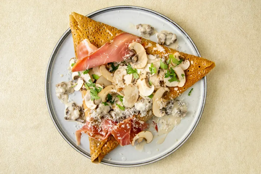 生ハムと六甲シャンピニオン、キャラメルオニオンのクリームガレット(1760円)