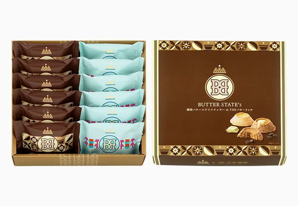 三本珈琲×BUTTER STATE’s 珈琲バターステイツクッキー ギフト 12個入(THEバターリッチ6個、珈琲バターステイツクッキー6個) 1,836円(本体価格1,700円)