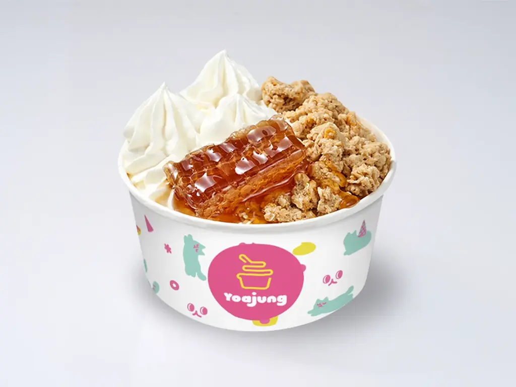 - ヨーグルトコムハニー(コムハニー):自家製ヨーグルトアイスの上に、韓国産の天然蜂の巣(ハニカム)を贅沢にトッピングし、香ばしいグラノーラをたっぷり加えた一品。蜂蜜の濃厚な甘みとグラノーラのサクサク感が酸味のあるヨーグルトと調和する、シグニチャーメニューとして位置付けられている。