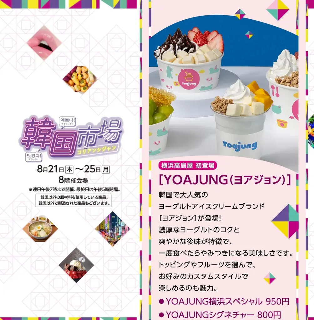 新大久保店のオープンに先立ち、ヨアジョンは横浜高島屋の催事「韓国市場」に期間限定出店します。期間限定出店は、首都圏での早期認知拡大を図るための試みであり、実際に商品を体験できる機会として位置づけられます。