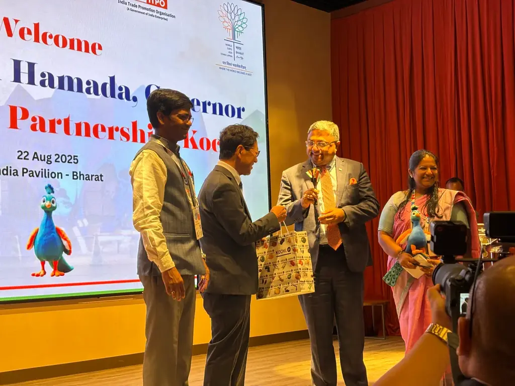 同じく8月22日にはインドパビリオンで「Kochi Day」を開催。ジビ・ジョージ駐日インド大使と濵田省司高知県知事が出席してセレモニーを行い、高知県からはインドへの記念品として「インド国旗鳴子」が贈られました。インド大使は両地域の共通点に触れ、今後の交流の深化に期待を示しました。