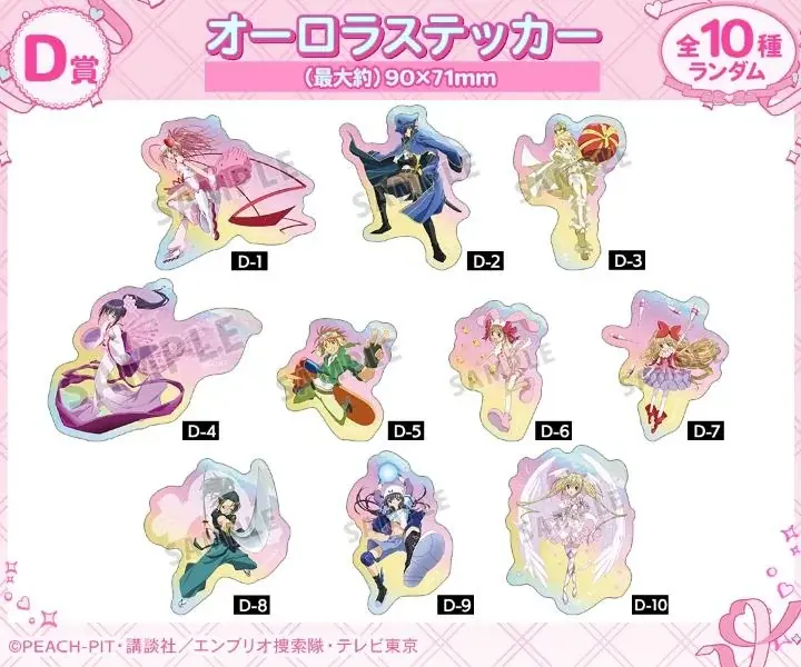 | 景品一覧 | A賞: 特大アクリルスタンド(全6種) B賞: アクリルアクセサリースタンド(全7種) C賞: マグカップ(全8種) D賞: オーロラステッカー(全10種) E賞: ホログラム缶バッジ(全10種) |