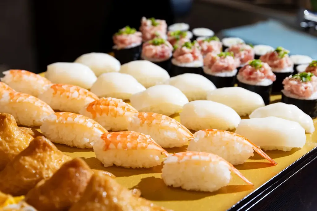 ビュッフェでは、お刺身、握り鮨、漁師汁、焼き物など多様な形で提供され、紅葉色の身のプリっとした食感と甘みを活かした調理が行われます。
